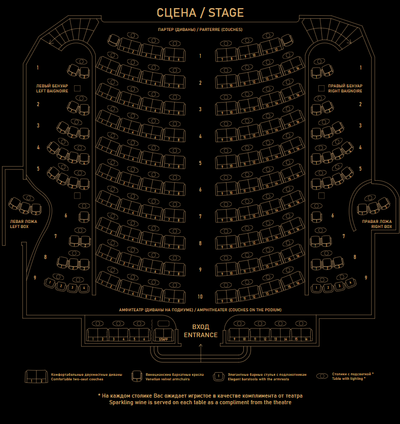 Crave Theatre Moscow – первый и единственный в современной России театр-кабаре. Театр расположился в самом сердце Москвы, в пронизанных историей переулках Китай-города. В Crave зрители приходят не только за ярким шоу абсолютно нового формата, но и за особым ощущением праздника. Атмосфера роскоши, ультрасовременное пространство впечатлений и эстетика кабаре.